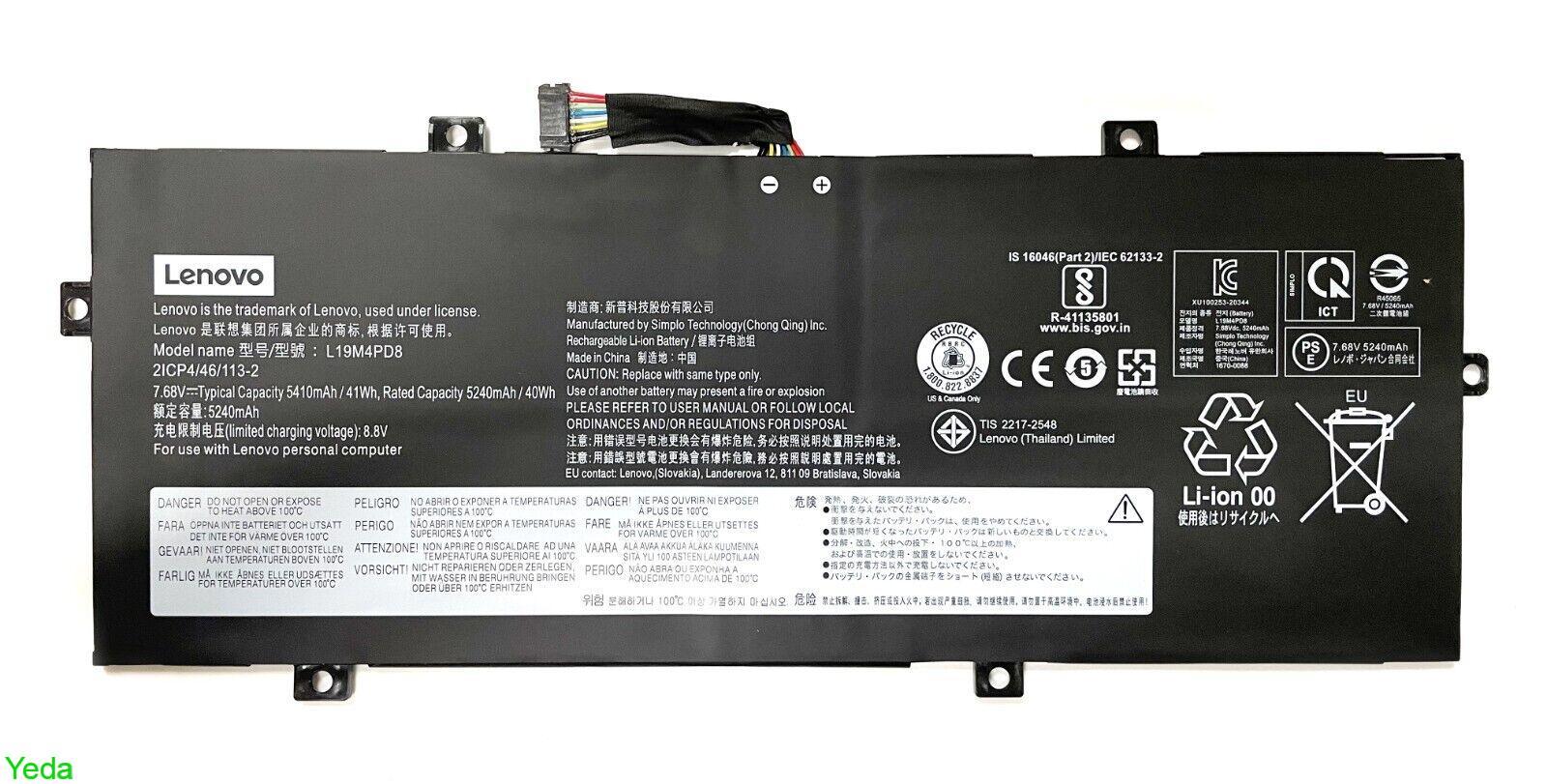 L19C4PD8 L19M4PD8 5B10X87839 Battery For Lenovo Yoga Duet 7-13IML05 סוללה פנימית